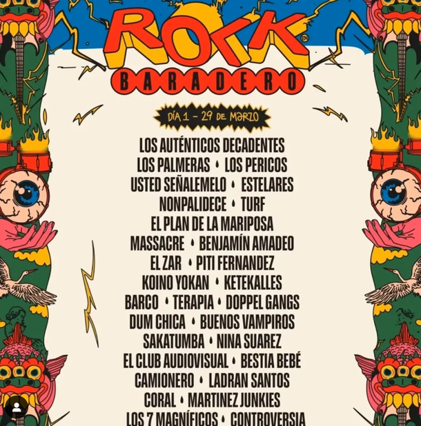 Habrá muchas bandas y solistas consagrados, como Las Pelotas, Los Pericos, Fabian Cantilo, Rata Blanca, Catupecu Machu y hasta Los Palmeras y hay mucha expectativa por bandas nuevas, como Ladran Santos, que estará abriendo el festival el viernes.