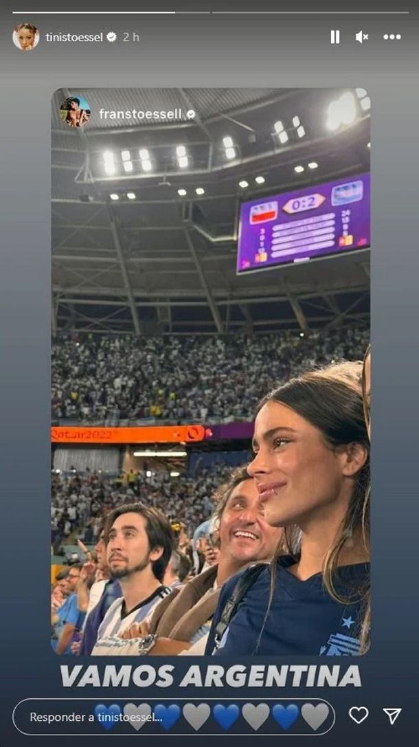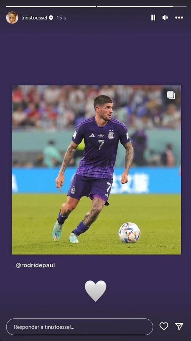 Luego, Tini compartió en sus historias una foto de ella en el estadio 974 y la foto del mediocampista de la Selección argentina con un corazón blanco.
