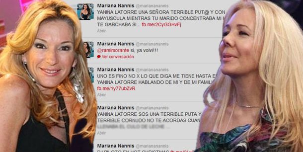 "Tini Stoessel sos una terrible puta y tu marido un terrible pelotudo no te acordás cuándo medio plantel te llenaba el culo de leche", dice uno de los mensajes que parafrasea un viejo tuit de Mariana Nannis