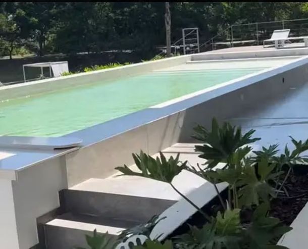 Se trata de una residencia de aproximadamente 1.000 metros cuadrados cubiertos, que impresiona no solo por su tamaño, sino por sus comodidades: ¡12 baños!, cinco dormitorios, y apenas tres años de antigüedad. También cuenta con dos cocheras cubiertas y amplios espacios distribuidos en varios niveles.