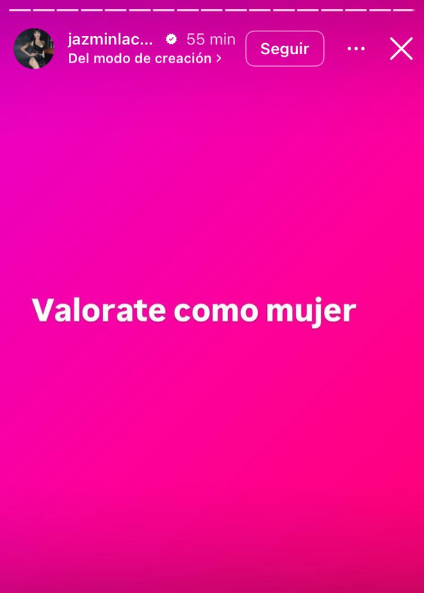 Aunque no se reveló públicamente el contenido exacto de esos mensajes, Salinas no dudó en responder con una historia en su cuenta de Instagram que más tarde decidió eliminar: “Valorate como mujer”, decía su última historia.