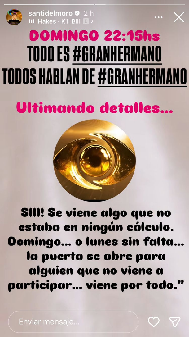 No obstante, en la tarde de este viernes el que sorprendió a todos fue Santiago del Moro, con un nuevo anuncio en su cuenta de Instagram. El conductor sacudió a las redes sociales anticipando un nuevo ingreso: "Domingo 22:15hs. Siiii, se viene algo que no estaba en ningún cálculo", comenzó indicando.