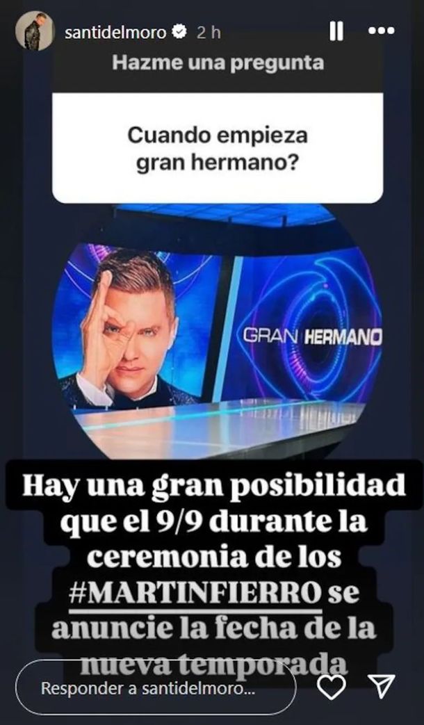 A través de una historia de Instagram, el conductor reveló lo que todos los seguidores del reality de Telefe esperaban saber: “Hay una gran posibilidad de que el 9 de septiembre durante la ceremonia de los #MartínFierro se anuncie la fecha de la nueva temporada”.