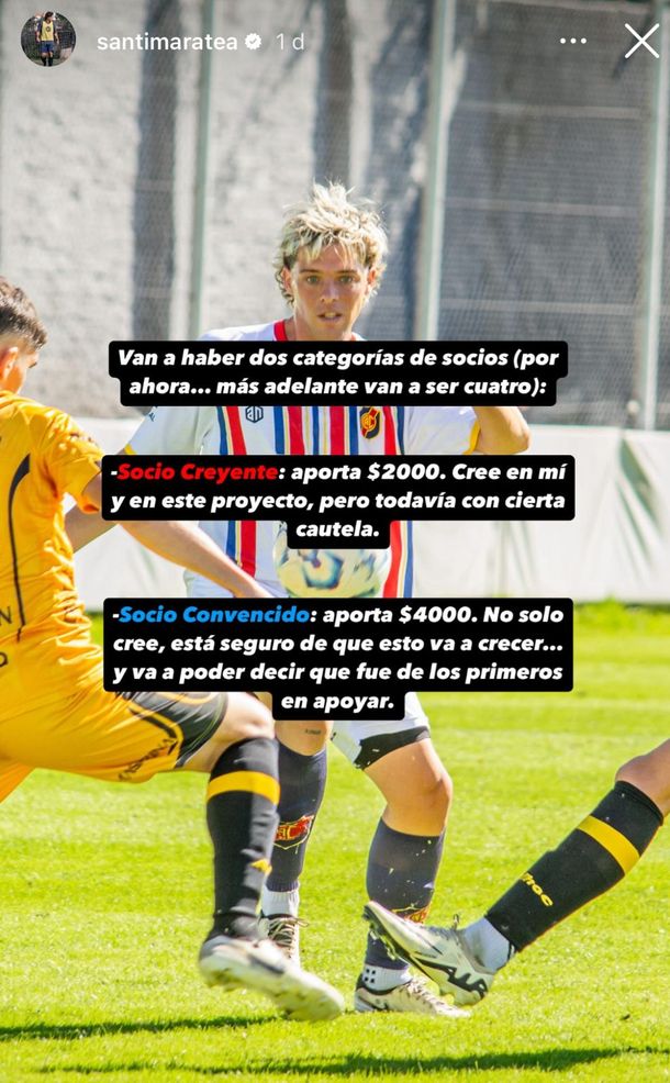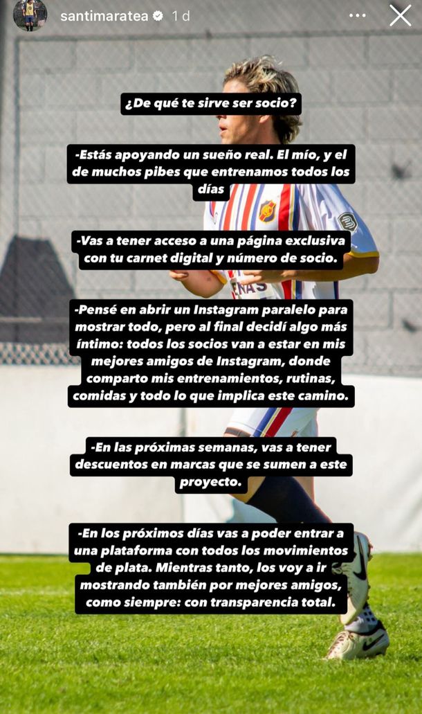 Santiago Maratea sorprendió a sus fieles seguidores al anunciar el lanzamiento de una propuesta nunca antes vista: un sistema de socios centrado en él mismo, con el propósito de seguir creciendo en su carrera como futbolista y al mismo tiempo beneficiar a su equipo.