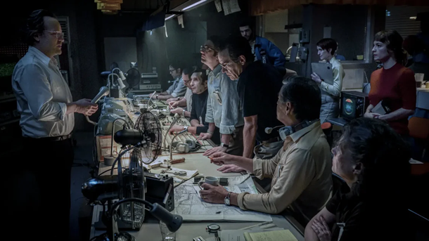 Un retrato perfecto de cómo es un programa en vivo: monitores con el registro de las cámaras, equipos de sonido que deben ajustarse con operadores, sonidistas, la encargada de los créditos en las imágenes entrando y saliendo mientras los teléfonos suenan sin parar aumentando así más la tensión de un equipo que está a punto de pasar las horas más temibles, irracionales e históricas de su vida. Y todo, claro, llevado a la pantalla grande en una imagen que corresponde a 1972: poca nitidez, trajes holgados, teléfonos de cable, walkie talkies más grandes que las manos de uno, televisores de tubo e, incluso, créditos hechos a mano con cámaras que todavía tienen rollos.
