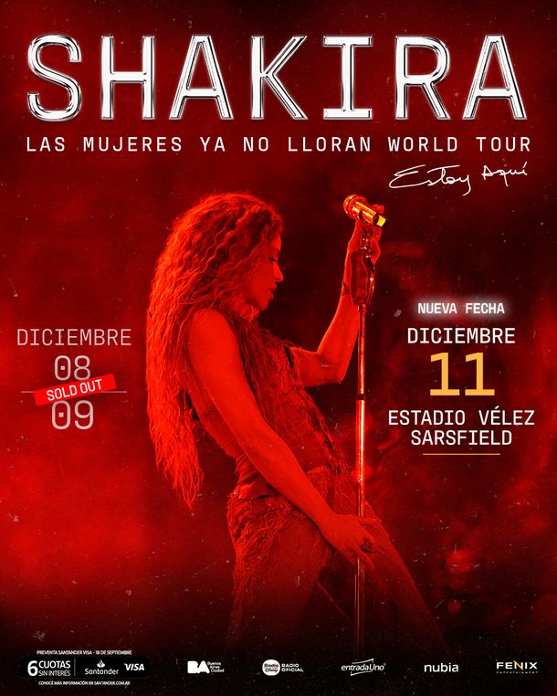 Shakira confirmó que dará un tercer show en Buenos Aires como parte del cierre de su gira mundial, "Las mujeres ya no Lloran World Tour: Estoy aquí". El anuncio llega después de que las dos primeras fechas, del 8 y 9 de diciembre en el Estadio José Amalfitani, se agotaran en cuestión de horas.