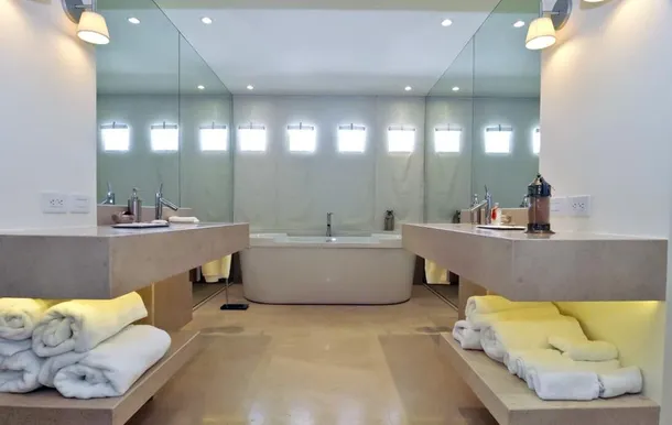 La mansión tiene una peculiaridad que la conecta con su casa en Esplugues de Llobregat, en España: prima el color blanco y las grandes puertas y ventanas que proporcionan mucha luz a los interiores. Pese a lo colorido que es el armario de la artista tanto encima de los escenarios como cuando sale a la calle, en sus casas parece que Shakira prefiere la paz del color blanco. La residencia, con muelle para salir a navegar, también consta de piscina exterior, un amplio jardín y gimnasio.