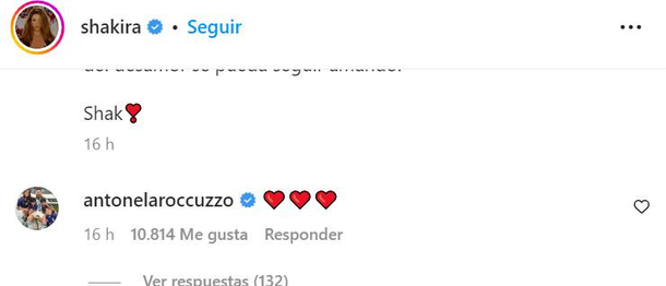 Uno de los comentarios del post fue el de la esposa de Lionel Messi, quien la apoyó con emojis de corazones, una manera de expresar cariño.