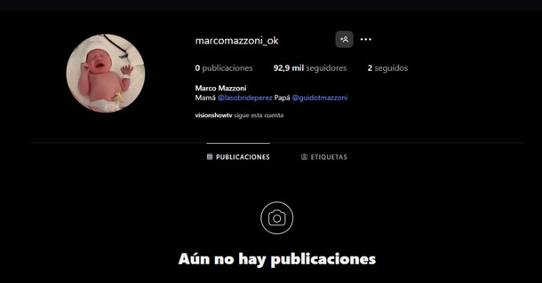 Por otro lado, cabe destacar que Sol Pérez le creó una cuenta de Instagram a su hijo Marco, con el apellido de su esposo Guido Mazzoni. La cuenta que solo tiene publicaciones compartidas ya suma casi 93.000 seguidores.