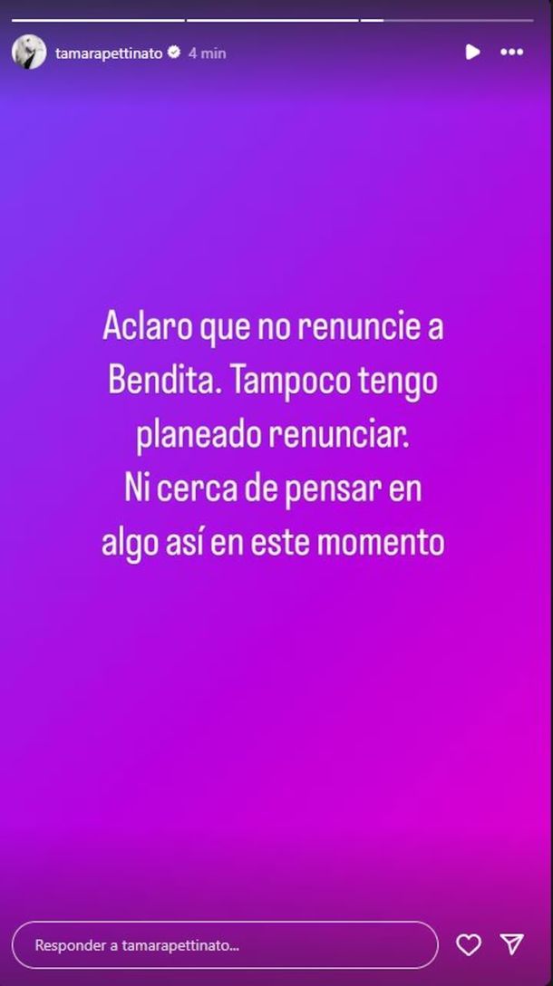 Luego de que Beto Casella hablara de su enojo con Tamara Pettinato y leyera en vivo un cruce de mensajes, en donde ella daba a entender que se iba de Bendita, la panelista usó sus redes sociales para desmentirlo.