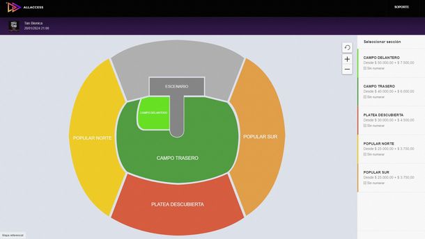 - Platea descubierta: $30.000 (+ $4.5000 de servicio)