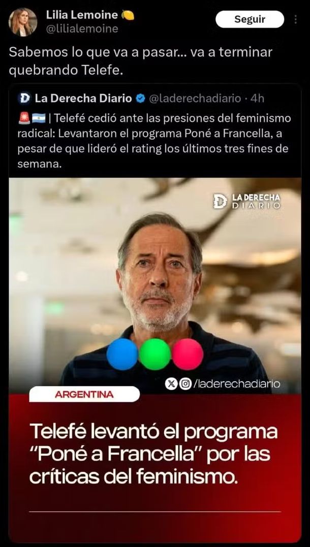 Sus tuits se viralizaron rápidamente y generaron un intenso debate en la plataforma. Mientras que la diputada expresó: “Sabemos lo que va a pasar… va a terminar quebrando Telefe”, el legislador porteño Ramiro Marra expresó su desacuerdo en redes sociales con un contundente “LOS ZURDOS ROMPEN TODO”.