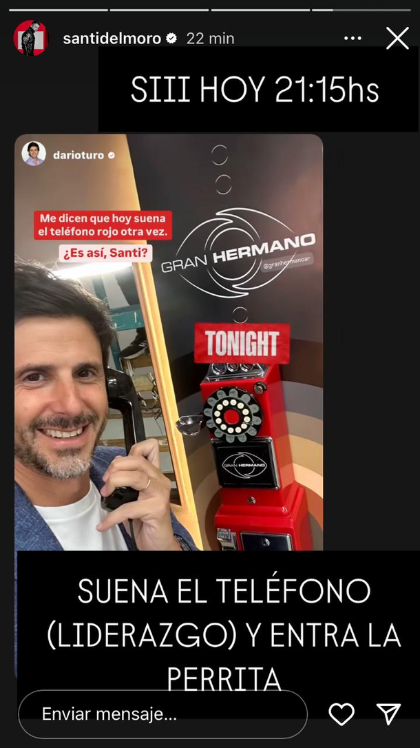 En este sentido, Santiago del Moro volvió a pronunciarse en las redes sociales para confirmar que hoy los jugadores vivirán una emoción muy grande al recibir a una perrita rescatada como nueva mascota de la casa. Pero eso no es todo: hoy sonará nuevamente el teléfono rojo y, según lo que dio a entender el conductor en su posteo, quien atienda obtendrá el liderazgo semanal.