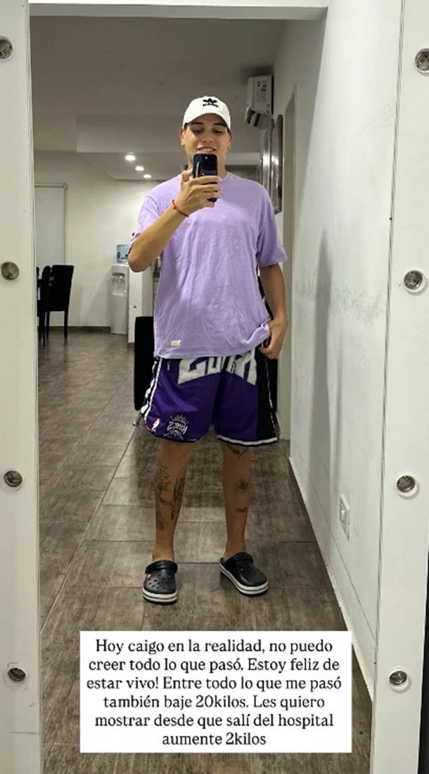 En las últimas horas, el joven de 22 años emocionó a sus seguidores al publicar una selfie frente al espejo, donde reflexionó con sinceridad sobre lo vivido: “Hoy caigo en la realidad, no puedo creer todo lo que pasó. ¡Estoy feliz de estar vivo!”.