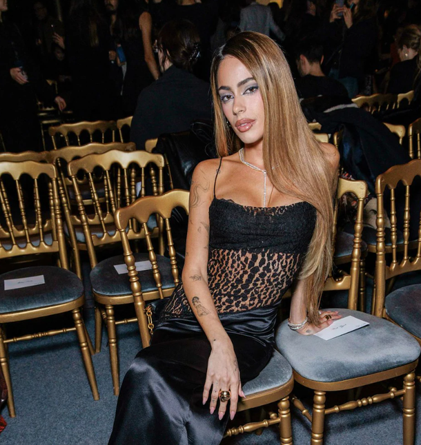 Los looks de Tini siempre son garantía y es que la cantante ha ido evolucionando su estilo a lo largo de los años hasta convertirlo en uno donde lo urbano, lo Y2K y los toques de sensualidad son clave. A su llegad al desfile de Balmain, el cual tuvo lugar en el recinto cultural The Grande halle de la Villette, la cantante sorprendió con un vestido más que perfecto para la ocasión condetalles de transparencias que fusionaban elegancia y sensualidad. Complementó su look con un abrigo negro, stilettos al tono y un maquillaje que resaltó su mirada, logrando un estilo chic y moderno.