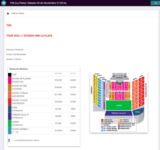 Las más accesibles están 6.000 pesos, pero la experiencia premium es muy costosa. Precios de las entradas para Tini en el Uno de La Plata.