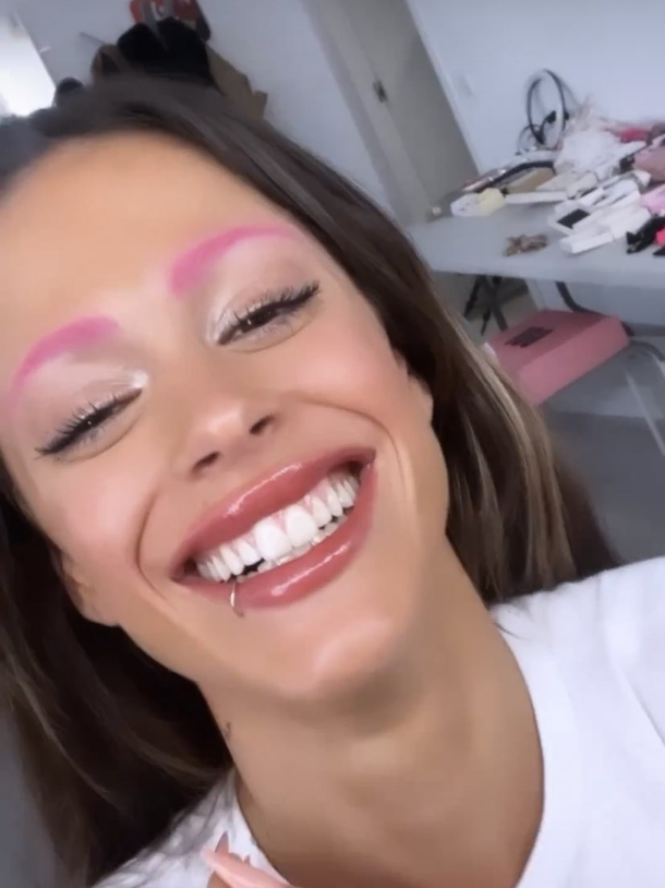 En su cuenta de Instagram les contó a sus seguidores que decidió teñirse las cejas de fucsia. Lo hizo mediante un video que publicó en sus historias en donde se puede escuchar un adelanto de una de sus nuevas canciones. En apenas segundos se ve cómo Tini tuvo que decolorarse el pelo para finalmente lucir el vibrante color neón.