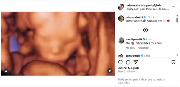 Este martes, Oriana Sabatini y Paulo Dybala compartieron una noticia que alegró a sus seguidores: están esperando su primer hijo. Para anunciarlo, la pareja publicó un video titulado “primer posteo de nosotros tres”, que combina imágenes de la ecografía con momentos íntimos y llenos de ternura entre ambos.
