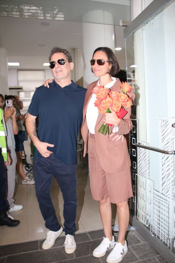 En tanto, Natalí fue por algo un poco más formal, pero de marcado estilo moderno. Un blazer y bermudas de color marrón claro, combinados con remera y zapatillas blancas. Como accesorios, llevó anteojos de sol y un bolso negro de formato compacto, con una llamativa cuerda naranja que contrasta con el resto de su atuendo. Entre los exclusivos invitados, estuvo Javier Calamaro, hermano del novio y también músico, quien arribó con su esposa, Paola Montes de Oca.