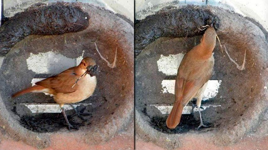 Todo un obrero admirable: mirá cómo un hornero construye su nido