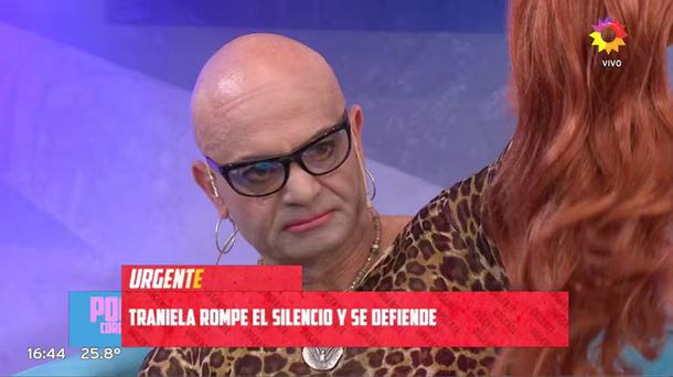 Traniela, visiblemente firme, manifestó: “Yo soy pelada, uso peluca porque soy pelada y porque me gusta. No tengo problema en estar pelada. Y si querés, me voy a cambiar y te muestro cómo quedo sin peluca”, y con esas palabras, se quitó la peluca en vivo.