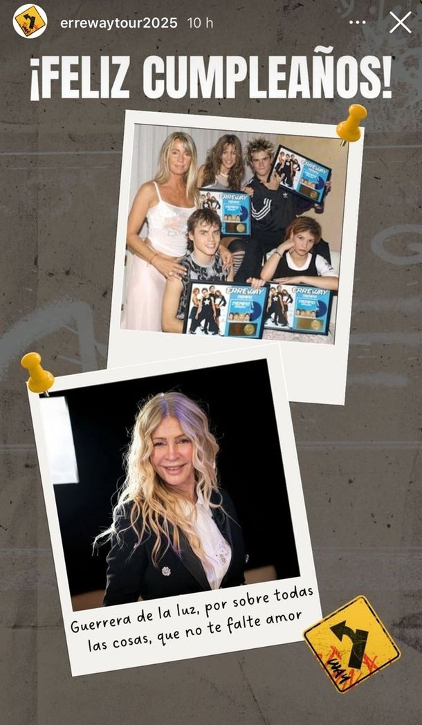 El perfil oficial de Erreway, la banda nacida del fenómeno Rebelde Way, compartió una publicación con imágenes del pasado y del presente, acompañadas de un mensaje con tono espiritual: “¡Feliz cumpleaños! Guerrera de la luz, por sobre todas las cosas, que no te falte amor”.