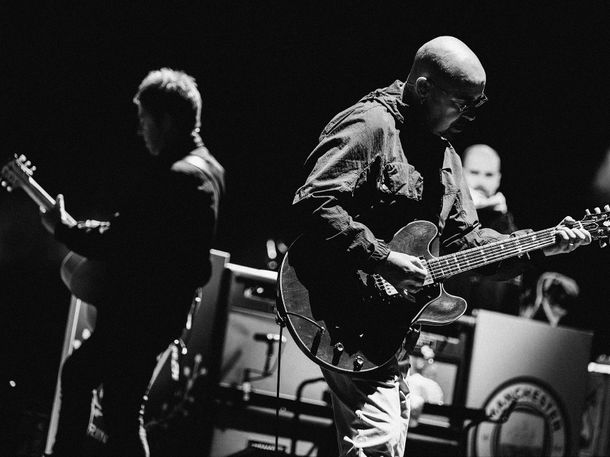 La maquinaria Gallagher funcionaba en estado de gracia. Bonehead, maestro del ritmo, y Gem Archer, sutil y preciso, sostenían la emblemática pared de guitarras mientras liberaban un poco a Noel para que brillara en los momentos vocalmente exigentes; no solo en "sus canciones", sino también en estribillos como los de "Acquiesce" y "Stand by Me". Andy Bell completaba el trío de "soporte técnico", permitiendo que los hermanos se movieran con libertad, concentrados en su química única. Liam desplegaba su magnetismo inigualable como frontman: no necesita bailar ni vestir atuendos demagogos, y sus comentarios entre canciones a veces se pierden, pero su presencia domina el estadio. A Liam dale dos maracas y una pandereta y le sobra para tomar el mundo por asalto.