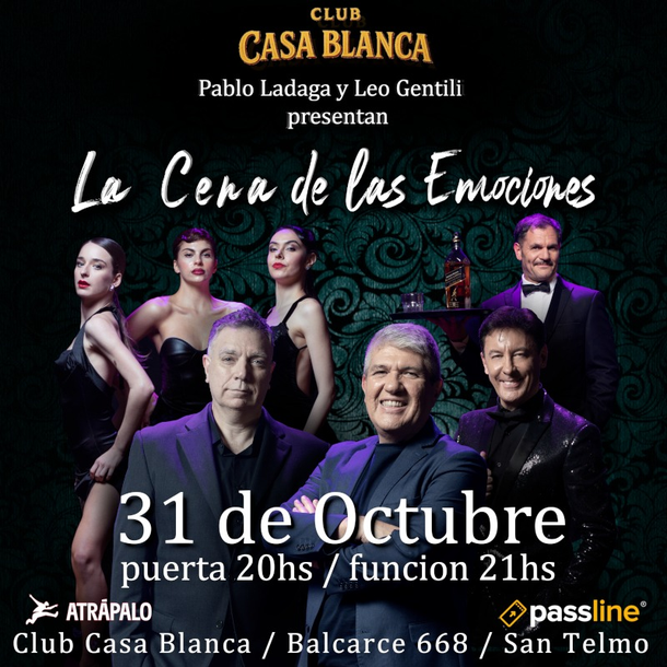Una velada distinta, cargada de pasión, recuerdos y música, se vivirá el jueves 31 de octubre en el Club Casa Blanca (Balcarce 668, San Telmo). Bajo el lema “Una noche en la que vamos a viajar juntos para compartir sentimientos que nos unen”, los reconocidos relatores Pablo Ladaga y Leonardo Gentili invitan al público a un encuentro en el que el fútbol, la radio, los ídolos populares y el teatro se mezclan para celebrar la argentinidad.