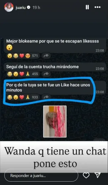 A raíz de esto, Juariu compartió las capturas que reavivan la polémica. “Mejor bloqueame porque se te escapan likes. Seguí de la cuenta trucha mirándome porque de la tuya se te fue un like hace unos minutos”, escribió la empresaria.