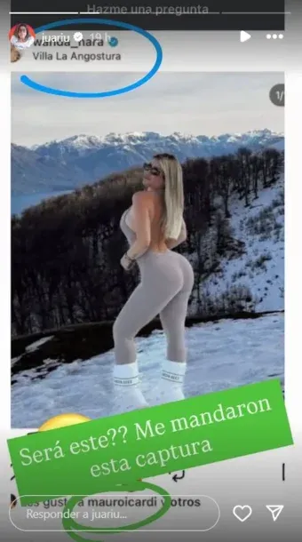 En ese momento, la influencer mostró la prueba que comprueba las palabras de la hermana de Zaira Nara: “¿Será este?“, lanzó, pícara, sobre la publicación que Wanda había subida desde Villa La Angostura, muy sensual, y donde se ve el ”me gusta" de Mauro.