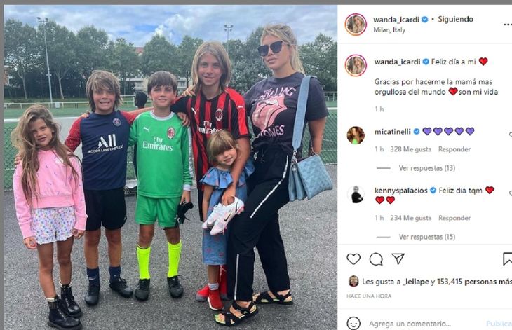 "Gracias por hacerme la mamá mas orgullosa del mundo son mi vida", posteó quien representa al delantero del PSG. En la foto están los tres hijos varones que tuvo con Maxi López y las nenas del matrimonio con Icardi.