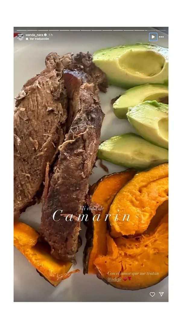 Además, mostró la comida que le da la producción y escribió "con el amor que me tratan”. Se ve un almuerzo rico en proteínas con carne magra, rodajas de palta y bastones de zapallo cabutia.