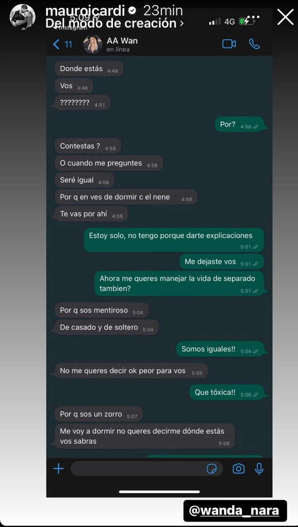 La novela entre Wanda Nara y Mauro Icardi parece no tener fin. Luego de que la rubia confirmara la separación a través de las redes sociales, el futbolista compartió chats en los que ella le pregunta dónde está y él la trata de “tóxica”.