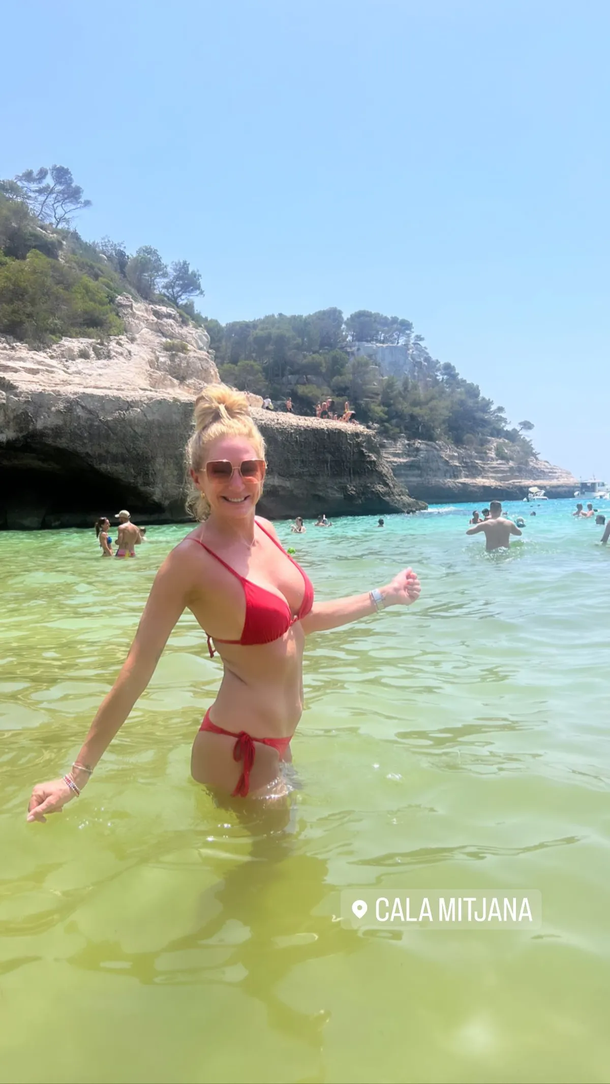 Desde las playas de Menorca, Yanina Latorre deslumbró a sus seguidores con su espléndida figura. Posando en las aguas cristalinas, lució una bikini color rojo furioso de estilo colaless.
