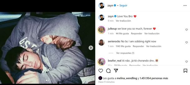 En este sentido, el exmiembro de One Direction posteó una foto en sus redes donde se los veía durmiendo uno sobre el otro durante una de las tantas giras que vivieron juntos y escribió: "Te amo, hermano".