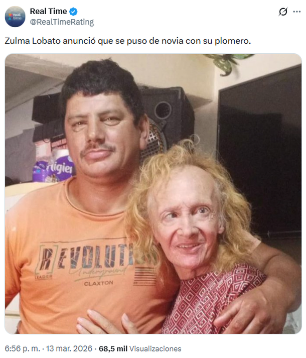 En las últimas horas, trascendió una noticia del mundo del espectáculo que no pasó para nada inadvertida: Zulma Lobato tiene nuevo novio. Según informó la cuenta de X @RealTimeRating y @mdzol, la mediática trans estaría saliendo ni más ni menos que con su plomero.