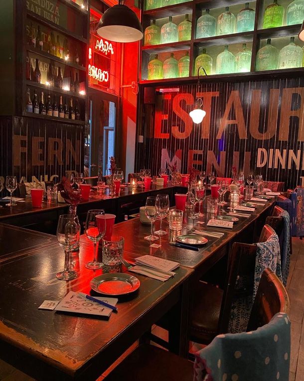 La Capitana es un bodegón temático y vermutería que rinde tributo a Eva Perón, con una ambientación inspirada en los años 40 y 50.