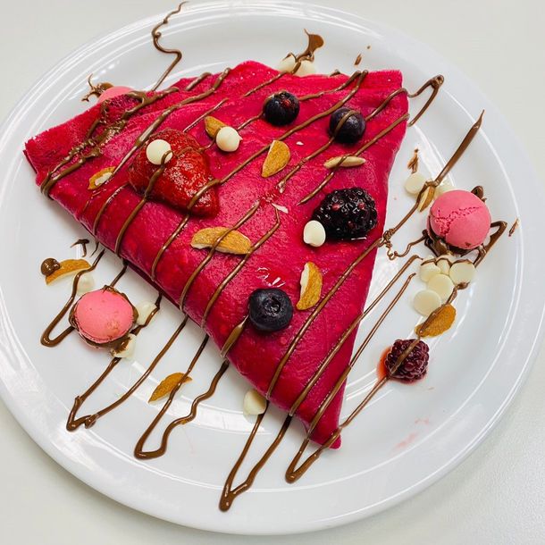 Para celebrar el amor, la crepería y pastelería artesanal París Crepas ofrecerá un original crepe teñido de color rojo pasión y relleno de abundante Nutella con frutos rojos. Este día, el producto estrella de la casa, de masa tierna y apenas crujiente, se ofrecerá en combo con una limonada casera a elección (de coco con mango y maracuyá, de menta con jengibre o de arándanos y frutillas) por $2.700 total.