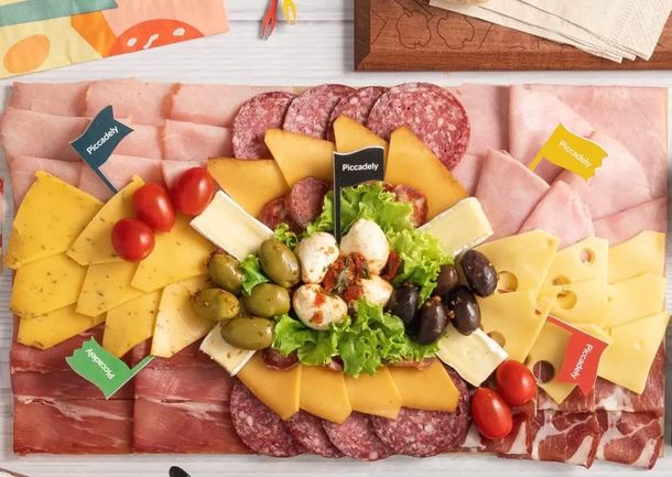 Por su parte, Piccadely ofrece la Picada Gourmet Mediana($3.960) trae jamón crudo italiano, bondiola, lomo praga, jamón cocido natural, fuet español, salamín criollo, queso brindamour al orégano, queso fontina, queso chubut ahumado, bocconcinos y brie francés para acompañar con tomates cherry, olivas negras y verdes, dip de crema ciboulette y pan.