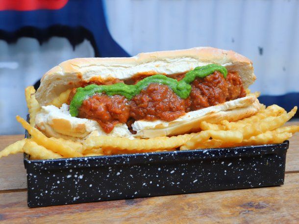 - Sándwich Fats Domino, con albóndigas en salsa pomodoro, pesto y un mix de quesos en pan baguette.