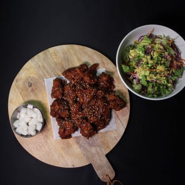 Pollo frito picante: $2800 para dos personas