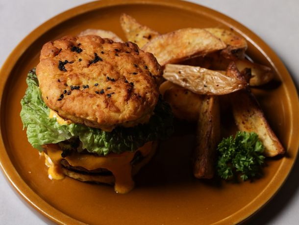 Todas se sirven con papas fritas y panes de receta propia a base de leche de almendras.