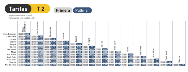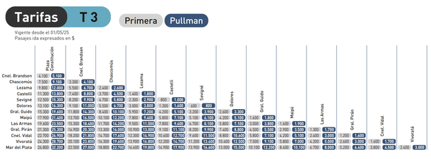 Antes que nada, cabe destacar que los pasajes de tren a Mar del Plata deben adquirirse de forma anticipada, no se permiten emitir boletos a bordo del transporte. Por su parte, en lo que respecta a las tarifas, las mismas están divididas entre primera y pullman, parando en todas las estaciones.