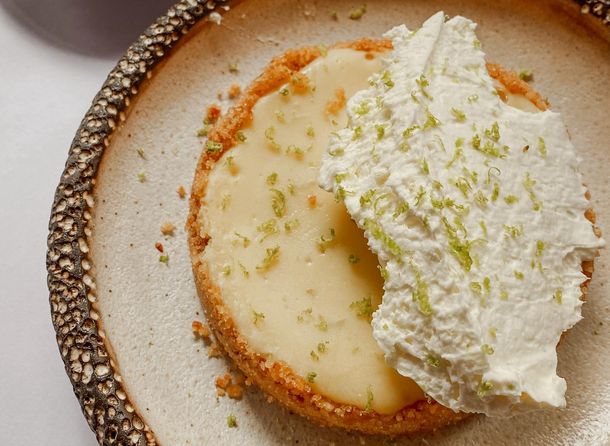 El Key Lime Pie es un clásico de la repostería estadounidense que, como el tradicional lemon pie, celebra la frescura de los cítricos, pero con un perfil más intenso y perfumado gracias a la lima. En La Pescadorita, se presenta en una versión refinada, con base crocante que sostiene una crema suave y sedosa, donde la acidez equilibrada y la fragancia de la ralladura de lima se combinan para lograr un final fresco y elegante. Este postre, que invita a cerrar la comida con una nota cítrica, se puede realzar aún más con el cóctel de autor Arrecife. Creado en la barra del restaurante, mezcla gin, jugo de lima, frutos rojos y un delicado toque de azúcar, logrando una bebida fresca y frutal que armoniza con los matices del postre. El resultado es un maridaje perfecto entre dulzura y acidez, que prolonga la experiencia gastronómica más allá de la mesa.