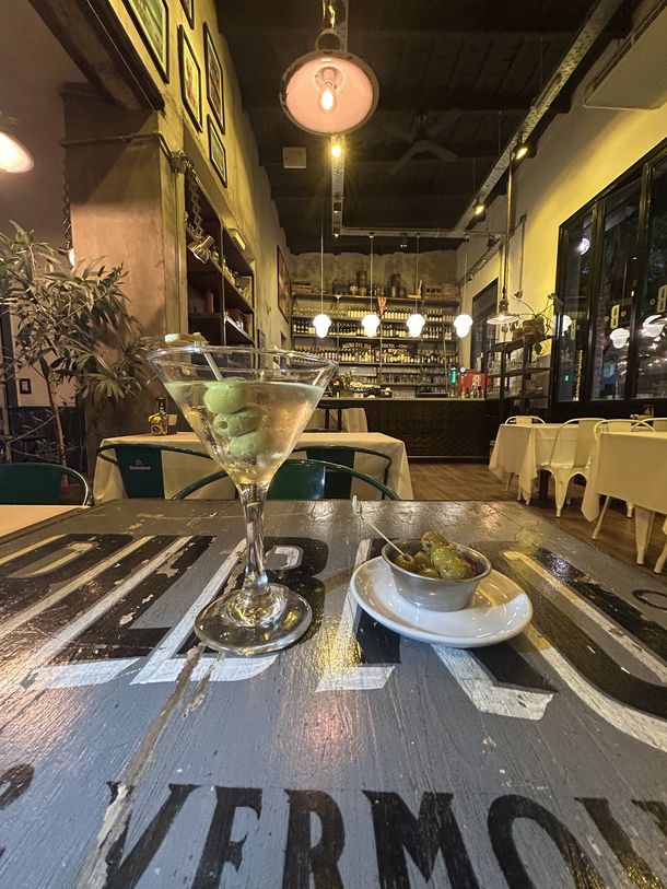 En el restaurante Puchero, ubicado en el barrio de Villa Luro, el Dry Martini ocupa un lugar destacado dentro de la propuesta de cócteles y aperitivos. Preparado con gin Bulldog, vermut seco y un encurtido artesanal elaborado en la casa, representa el espíritu clásico y preciso de su barra. Esta sección del menú rinde homenaje a los aperitivos tradicionales, reinterpretados con un enfoque actual que dialoga con el concepto de cantina porteña moderna que define al local. La ambientación del lugar equilibra elementos reciclados y detalles de diseño contemporáneo, creando una atmósfera acogedora con distintos sectores, como el salón principal, la terraza o la vereda calefaccionada. En la carta sobresalen platos para compartir —como empanadas de carne braseada, chipá de mollejas y provoleta con panceta—, además de pastas hechas a mano, cazuelas, risottos y postres típicos, ideales para pedir con un Martini.