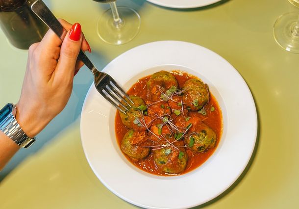 En Puchero, la elaboración de pastas frescas es un ritual cotidiano que refleja el espíritu artesanal de la casa. En el obrador del primer piso se preparan cada día especialidades como los raviolones de molleja con crema de verdeo, los sorrentinos de trucha con azafrán, los de lomito y quesos con bolognesa o los de asado y provolone con demi glace. También destacan los sorrentinos de boniato con pesto y pomodoro, la lasaña de carne braseada con espinaca, ricota, jamón y mozzarella, los fusilli al fierrito con estofado y los ñoquis de papa con albóndigas. Estas recetas encuentran el equilibrio justo entre sabor casero y refinamiento, y se disfrutan junto a vinos seleccionados, vermuts o cócteles de autor. En un entorno cálido y contemporáneo, Puchero reinterpreta la esencia de la cantina porteña con materiales nobles, luz natural y una ambientación acogedora.
