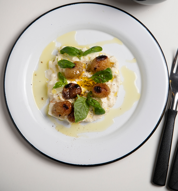 Para acompañar o compartir, el apartado de platitos y entradas propone sabores muy variados para elegir. Hay buñuelos de espinaca y hierbas con alioli; halloumi grillado con dulces de estación; coliflor a la leña con salsa de maní y crunchy de avellanas; berenjena asada con tahini y sriracha; hummus de arvejas con pan chato y una versión de fainá con provolone que homenajea la tradición porteña.