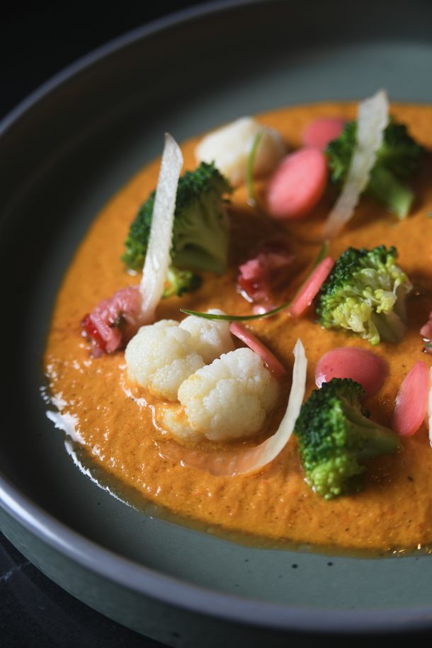 Por otro lado, la carta Tierra –que cobra protagonismo en invierno– propone sabores más intensos y arraigados, celebrando la fuerza del campo argentino. Platos como el soufflé de maíz con cuartirolo y quiquirimichi o el arroz amarillo con cúrcuma fresca, habas y tomate picante son una invitación a sumergirse en la profundidad de los sabores locales.