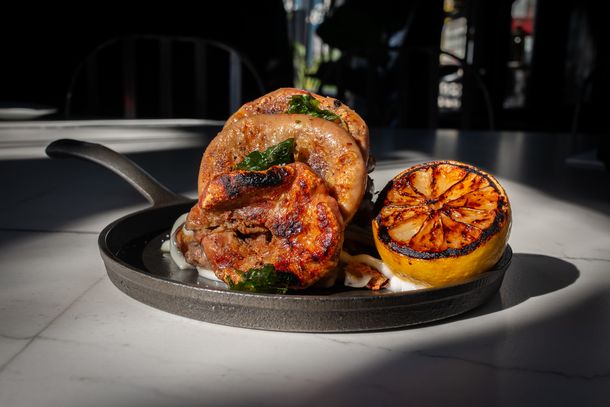 Las entradas funcionan como un anticipo de la experiencia del fuego: empanadas de masa casera (con versiones de carne, cordero o veggie), provoleta con ananá grillada y pistachos tostados, morcilla vasca con nuez y uvas pasas y, sobre todo, las mollejas a la parra con cremoso de batata y limón quemado, uno de los favoritos de los habitués. Son platos que muestran técnica, identidad y ese toque personal que distingue a la marca.