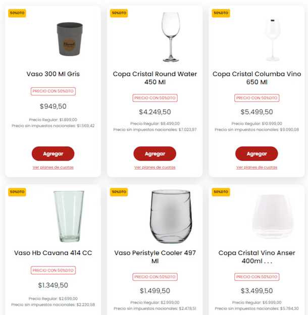 Cambiar los vasos del día a día o sumar copas elegantes para una cena especial ahora es mucho más accesible. Varios supermercados lanzaron promociones en productos seleccionados, con descuentos de hasta el 50% y distintas opciones de financiación, dependiendo del local.